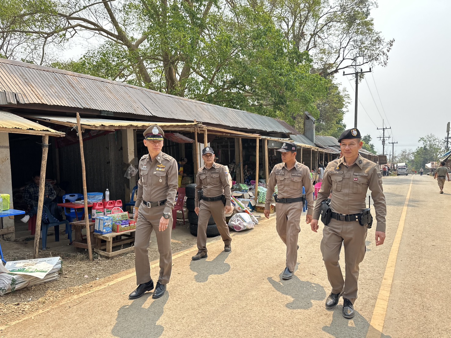 พ.ต.อ.ธเนตถ์ วิบูลย์เกียรติ์ ผกก.สภ.สองแคว และ สวป.ฯพร้อมด้วยสายตรวจรถยนต์ ออกตรวจเขตชายแดน จุดผ่อนป