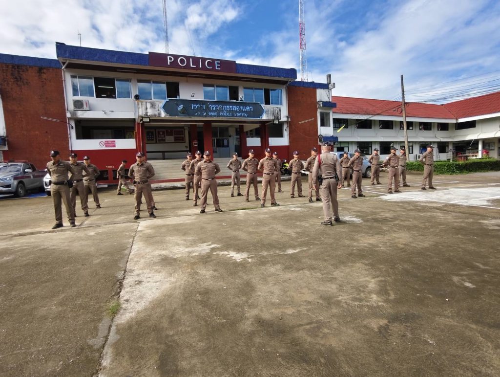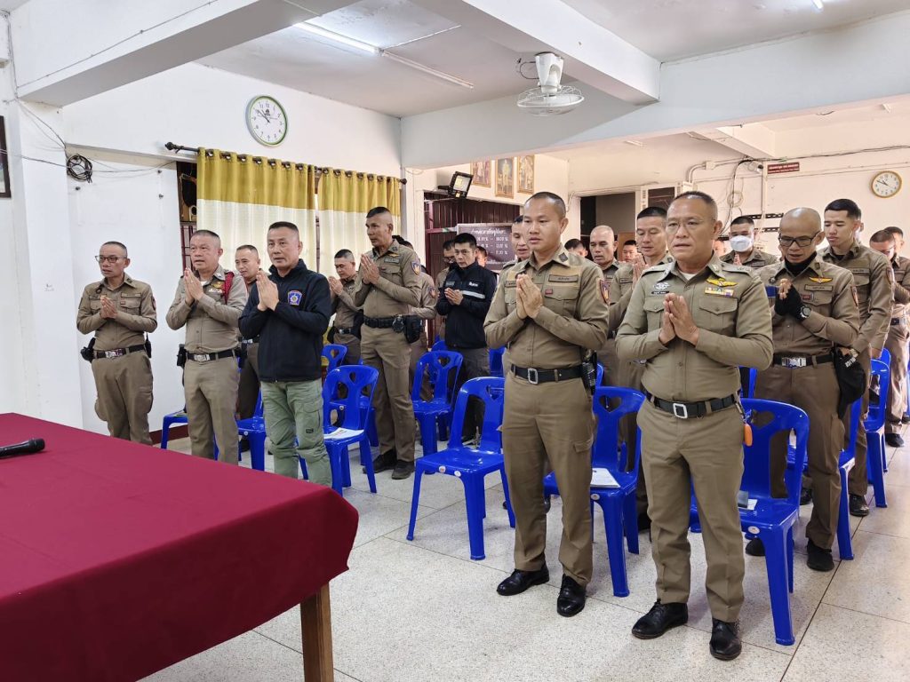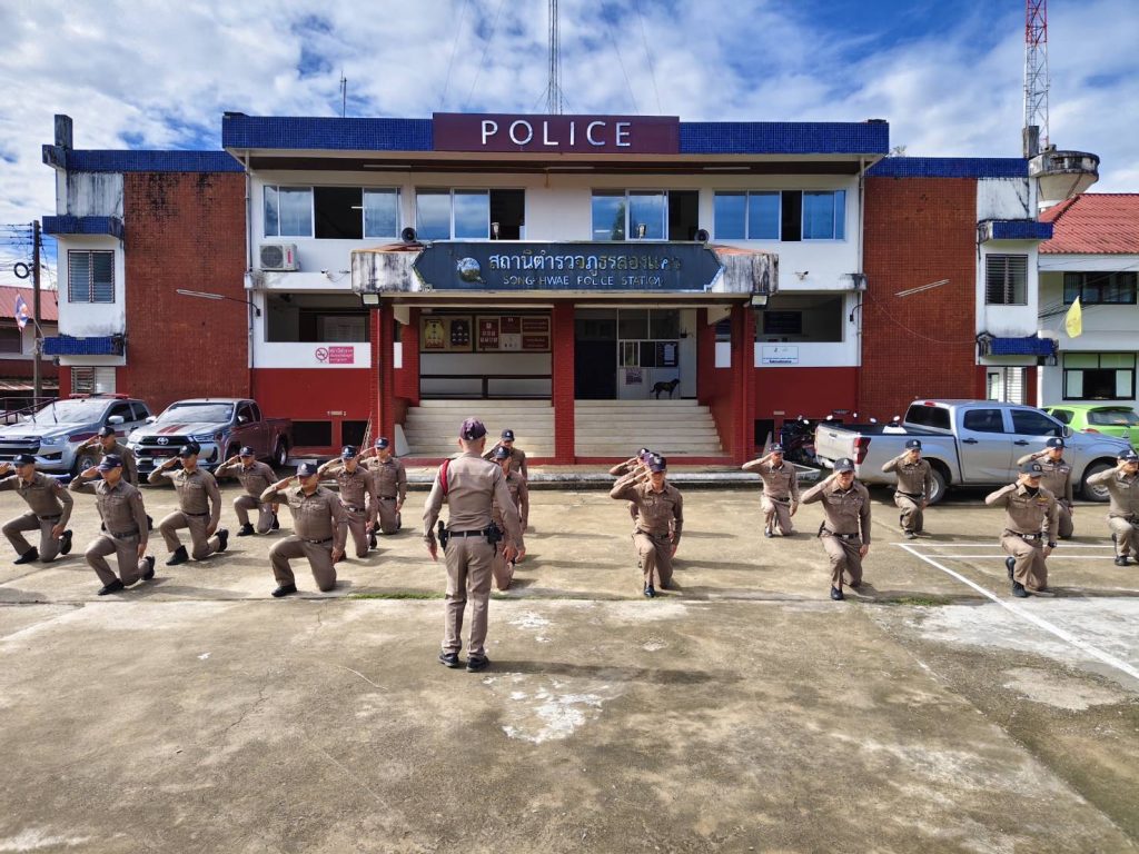 ประชุมข้าราชการตำรวจ ประจำเดือน พฤศจิกายน 2568 21/11/2568 โดย admin / ข่าวประชาสัมพันธ์,ข่าวกิจกรรม (วันนี้ 20 พ.ย.2568) เวลา 09.30 น.) พ.ต.อ.ธเนตถ์ วิบูลย์เกียรติ์ ผกก.สภ.สองแคว พร้อมด้วย พ.ต.ท.ธนะโรจน์ ธนรัฐนวลหงษ์ รอง ผกก.(สอบสวน) สภ.สองแคว , พ.ต.ท.บรรเจิด เลิศสุวรรณ รอง ผกก.สส.สภ.สองแคว ได้เรียกประชุมข้าราชการตำรวจ ประจำเดือน พฤศจิกายน 2568 โดยได้แจ้งนโยบายและข้อสั่งการของผู้บังคับบัญชา ภ.5 และ ภ.จว.น่าน ให้แก่ผู้ใต้บังคับบัญชาในสังกัดและกำชับการปฏิบัติ ดังนี้.1. ตรวจเครื่องแต่งกายและทรงผมของข้าราชการตำรวจ2. ติดเครื่องหมายประจำ สภ. ให้ข้าราชการตำรวจ3. การฝึกประจำสัปดาห์4. ได้นำสวดมนต์ไหว้พระเพื่อเป็นสิริมงคลแก่การปฏิบัติหน้าที่ของข้าราชการตำรวจ FacebookFacebookXTwitterLINELine