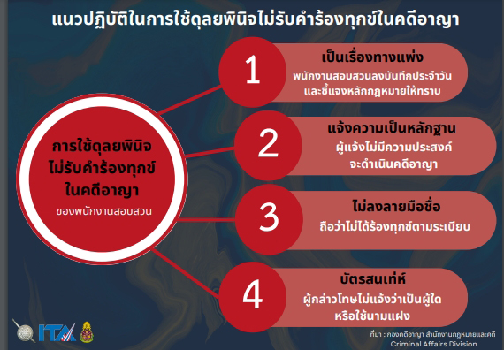 Home » แนวปฏิบัติในการใช้ดุลยพินิจไม่รับคำร้องทุกข์ในคดีอาญา