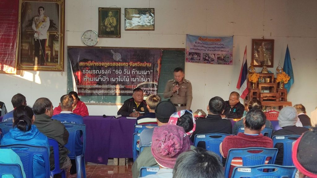 ให้ความรู้ด้านกฏหมายฯแก่ชาวบ้าน และประชาสัมพันธ์เรื่องการห้ามเผา ณ บ้านห้วยแกลบ ม.4 ต.ชนแดน อ.สองแคว
