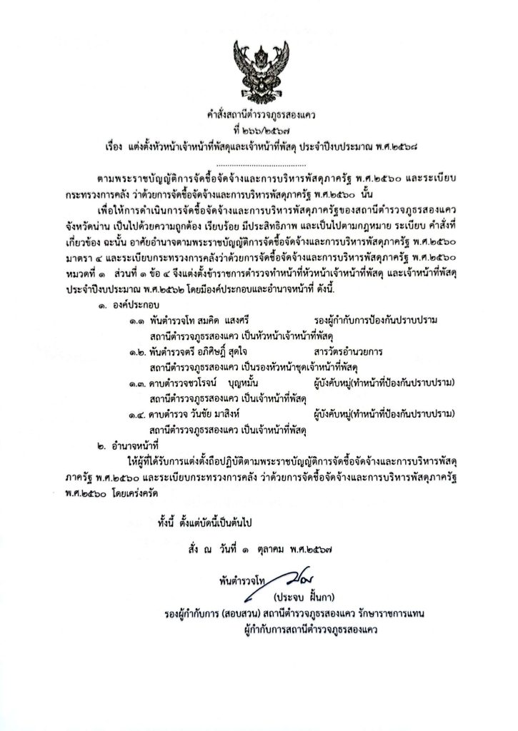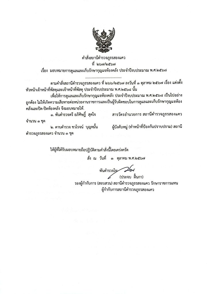 -คำสั่ง แต่งตั้งเจ้าหน้าที่ควบคุม กำกับ ดูแลสิ่งของหลวงที่เก็บรักษาในคลังพัสดุและมาตรการในการ เปิด-ปิด สถานที่เก็บอาวุธปืนและกระสุนคงคลังของทางราชการ